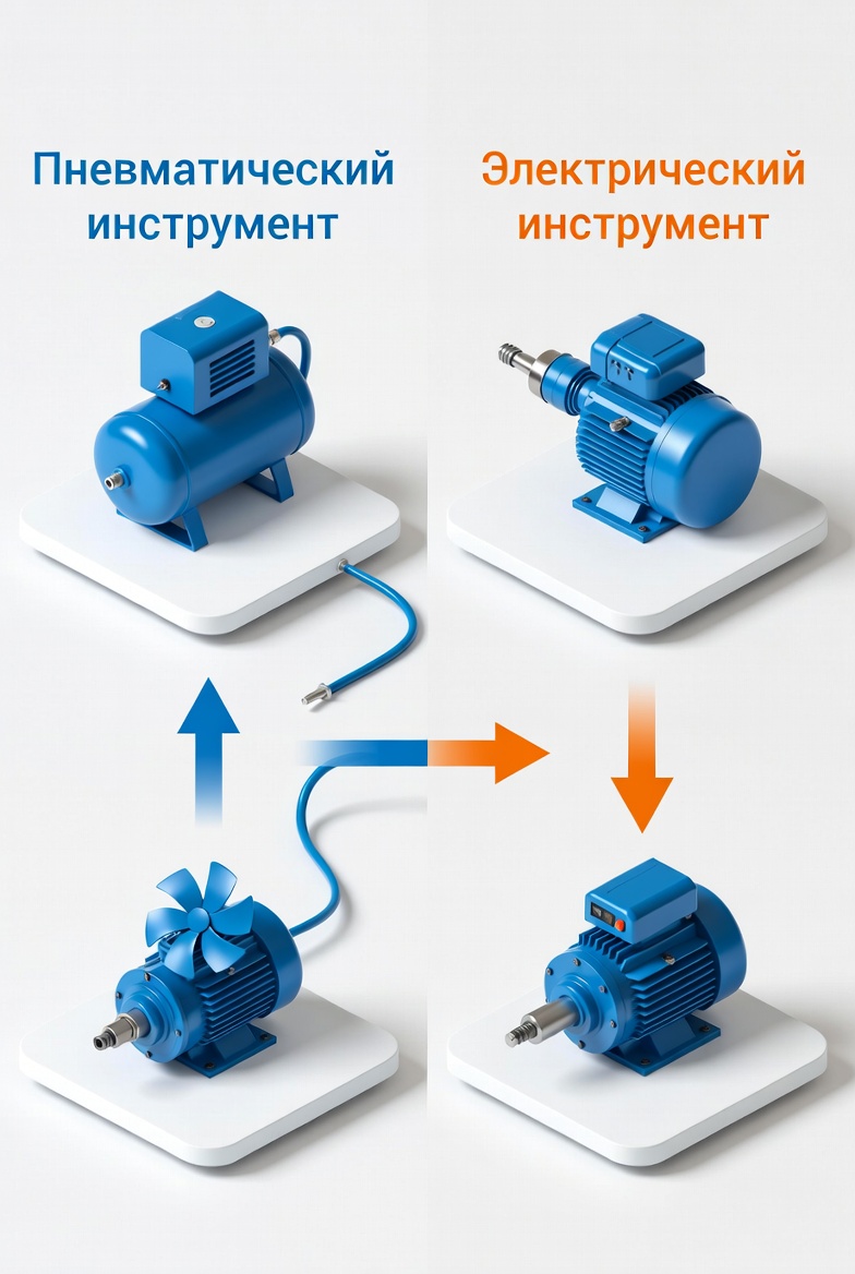 На современных российских предприятиях машиностроения и металлургии инструмент работает в экстремальных условиях: высокая запылённость, вибрация, перепады температур, постоянные пуски-остановки и строгие требования промышленной безопасности. Многие производства до сих пор выбирают электрический инструмент «по привычке», хотя пневматический даёт ощутимое преимущество по производительности, долговечности и затратам. В этой статье мы подробно разберём отличие пневматического инструмента от электрического и покажем, почему именно пневматика становится оптимальным решением для заводов России.