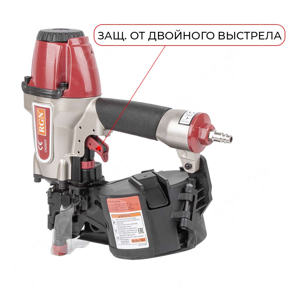 Пневмонейлер каркасный RGN CN565X - пневмопистолет для забивания барабанных гвоздей 32-65 мм. Идеально подойдет для применения в каркасном домостроении, а также изготовлении деревянных заборов, ограждений и других изделий из дерева, таких как тара, ящики и упаковка. Высокая скорость обеспечивается тремя выстрелами в секунду и позволяет увеличить производительность по сравнению с обыкновенным ручным трудом в четыре раза. Каркасный пневмонейлер, крайне прост и надежен в эксплуатации, работа с ним не требует специальных знаний и навыков. Безопасность труда обеспечивает наличие предохранителя от "шального" выстрела. Используются барабанные гвозди на проволочной сцепке, они абсолютно доступны на рынке и имеют невысокую стоимость. Доступность запчастей и простота конструкции обеспечит максимальную ремонтопригодность. Производство КНР. Гарантия 12 месяцев.